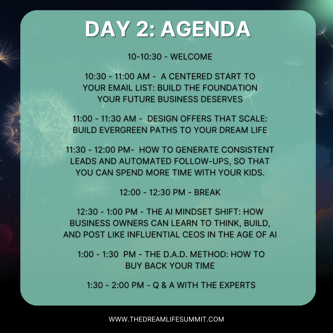 The Dream Life Summit is designed for the parentpreneur who’s building a business while raising a family — the ones juggling school drop-offs, late-night work sessions, and a dream that refuses to die.